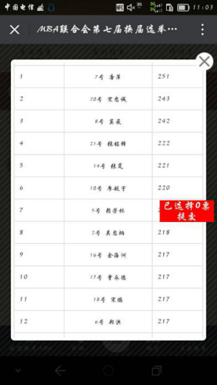 2017年6月17-21日,乐动ledong(中国)第七届MBA联合会换届网上投票活动圆满完成。所有在校MBA学生积极参与,行使了自己的选举权,踊跃参加了投票活动。本次换届选举活动,通过MBA在校学生微信投票方式,选举产生第七届MBA联合会主席团成员12人。