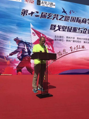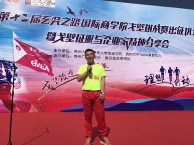 管理学院李烨院长在接下来的致辞中则向前来参加出征仪式的各位嘉宾及新、老戈友表达了真挚的问候和感谢,在致辞中,李烨院长阐明了戈壁挑战赛体现的人文精神并对戈壁精神对各位参与者的影响作用给予了高度的肯定和赞扬;并希望新一届的贵大EMBA戈壁挑战赛参赛选手能继承和发扬贵大精神,将贵州企业家的精神风貌在戈壁赛场上发扬光大,祝福和期望新一届的戈壁挑战赛选手能发扬坚韧不拔的精神意志,取得更为突出的成绩,获得圆满成功。