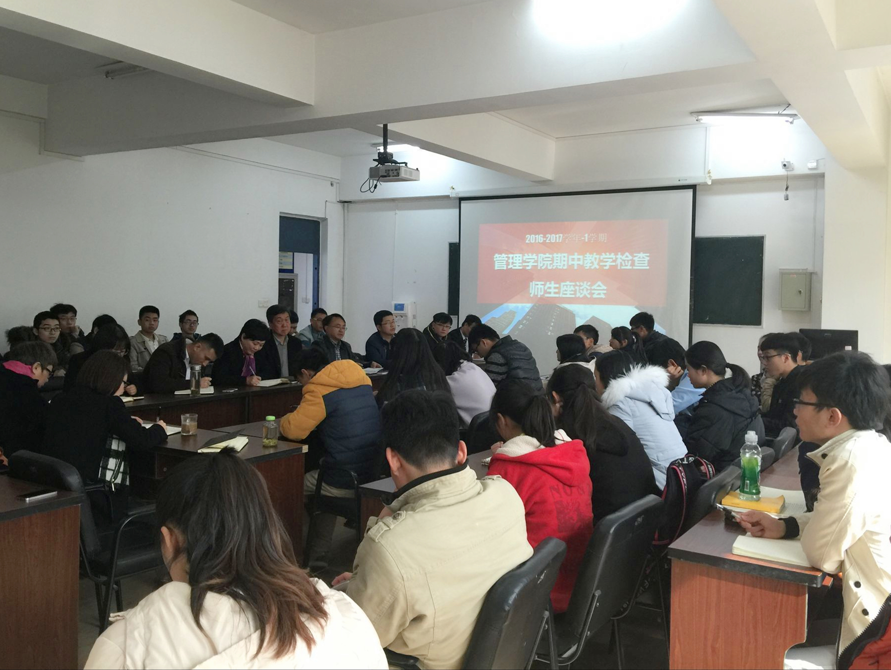 根据学校教务处关于2016-2017学年第一学期期中教学检查要求,乐动官方网站于12月5日中午1:00,在学院408教室召开期中教学检查师生座谈会。院党委书记陶玉顺,院长李烨,副院长宋山梅、王婷,院党委副书记张亚军,各教研室主任、支部书记,教学科、学生科工作人员,及13-15级各班学生代表共60余人参加座谈会。会议由分管教学副院长宋山梅主持。