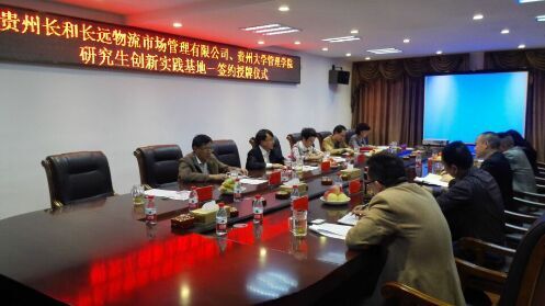 为增强企业管理创新能力和核心竞争力,提高学校科研实力、充实学科建设内涵、创造更为良好的育人环境,2015年11月6日,乐动官方网站研究生创新实践基地和本科教学实习基地签约及授牌仪式在贵州长和长远物流市场管理有限公司举行。长远物流市场管理有限公司总裁宋文斌、执行总裁沙松涛、副总裁聂淼、乐动官方网站李烨院长、周莉莉副院长等十余人出席了签约及授牌仪式。