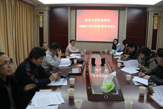 李烨院长强调出席会议的各位教师都是曾经担任或者多次担任EMBA课程助教的老师,有些老师直接参与了结合贵州企业实际进行的案例开发,会议的目的是将大家召集起来,听取大家对EMBA课程开发及课程教学管理方面的发展有何建议,从而促进EMBA项目能够更好的持续发展。