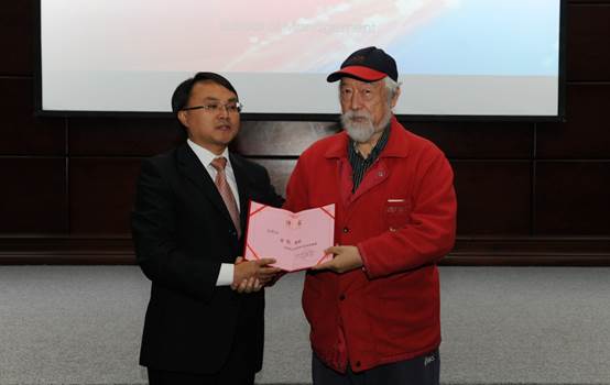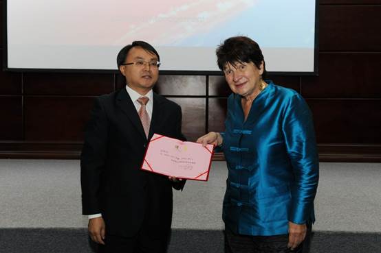 图3:聘任仪式,乐动ledong(中国)院长李烨教授为丹娜.左哈尔教授(Danah Zohar,英国)颁发聘书