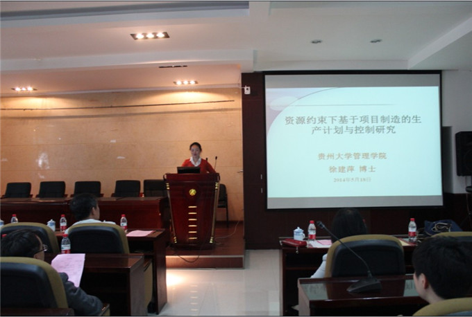 本次学术交流会共安排了七个会议发言,分别是贵州大学理学院胡支军教授的《后悔与失望模型在管理科学中的几个应用》、彭定涛博士的《压缩感知与稀疏优化简介》、胡尧教授的《统计模型及共算法应用》、管理学院王美强教授的《基于DEA的供应商评价研究》、徐建萍博士的《资源约束下基于项目制造的生产计划与控制》、经济学院熊德斌教授的《反事实框架方法体系的应用思考》和邓伦冰博士的《关于四川省农业潜在增长率的研究》。