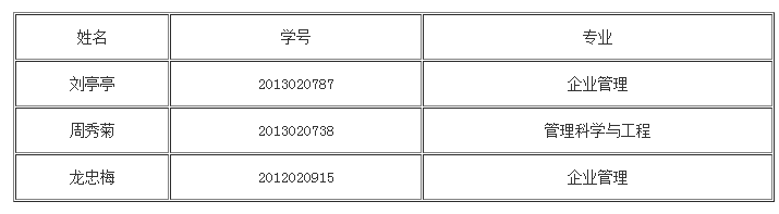 管理学院获得2013年“香港道德会”贵州大学助学金的研究生为: