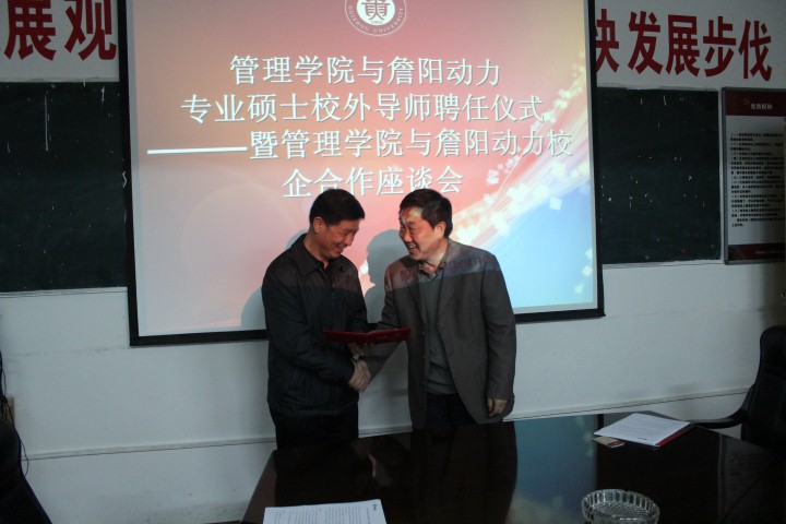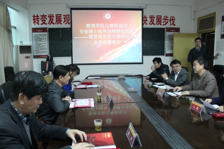 2013年11月20日下午,在乐动官方网站三楼会议室成功举行了“管理学院与詹阳动力专业硕士校外导师聘任仪式暨管理学院与詹阳动力校企合作座谈会”。
